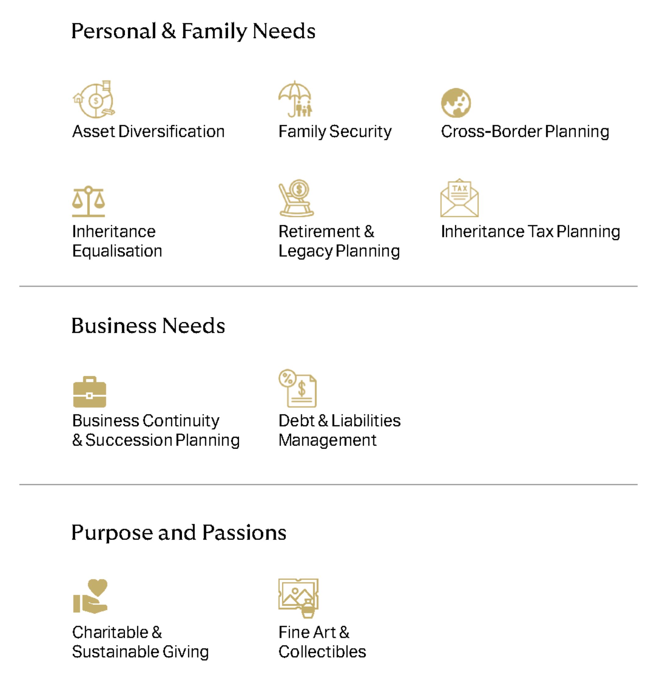 A needs-based approach to building, protecting and passing on wealth.